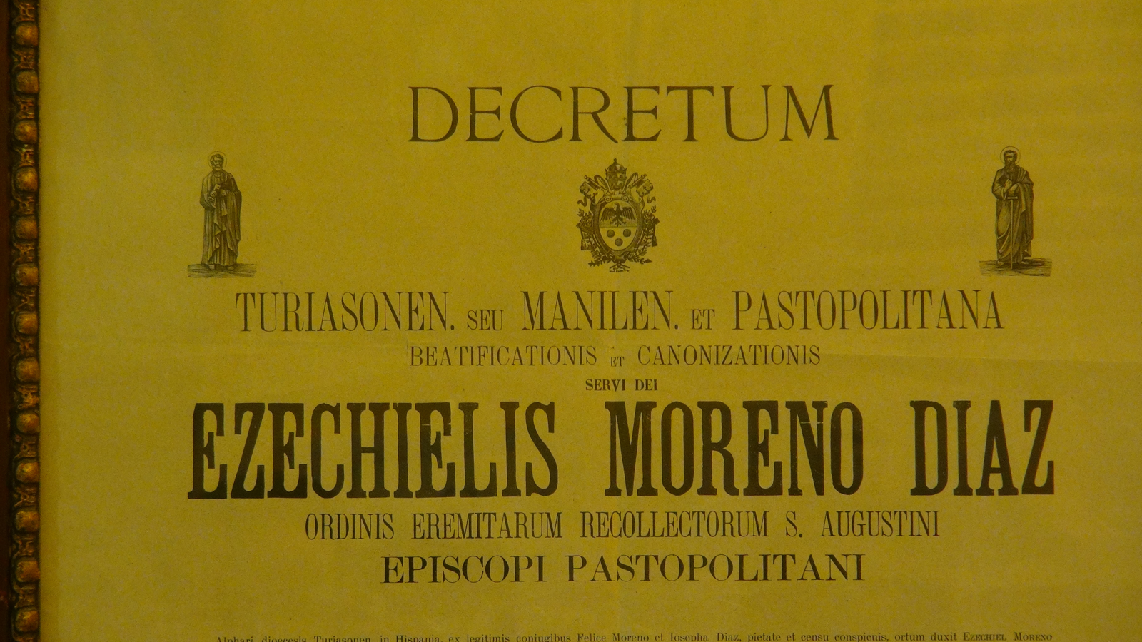 El 19 de agosto, se cumplieron 119 años desde que, en 1906, en esta comunidad y noviciado de los Agustinos Recoletos de Monteagudo (Navarra, España), falleciera fray Ezequiel Moreno; el 1 de noviembre serán 50 años desde que, en 1975, fuera beatificado en Roma por san Pablo VI; y el 11 de octubre, 33 años desde que, en 1992, fuera canonizado en Santo Domingo (República Dominicana) por san Juan Pablo